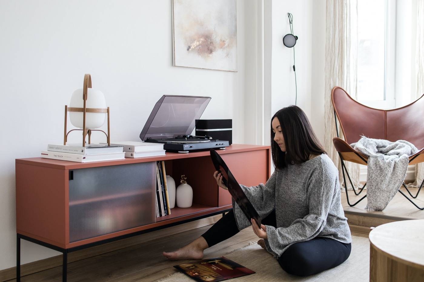 Being a color rookie, I felt pretty daring to have chosen the Met Media Furniture in an eye-catching Terracotta Blush color. Both the shape and the very color of the piece give it a slightly mid-century modern vibe, which is perfect for a home influenced by Scandinavian design. Mid-century and Scandinavian designs work well together as they both owe a lot to the Bauhaus Movement.