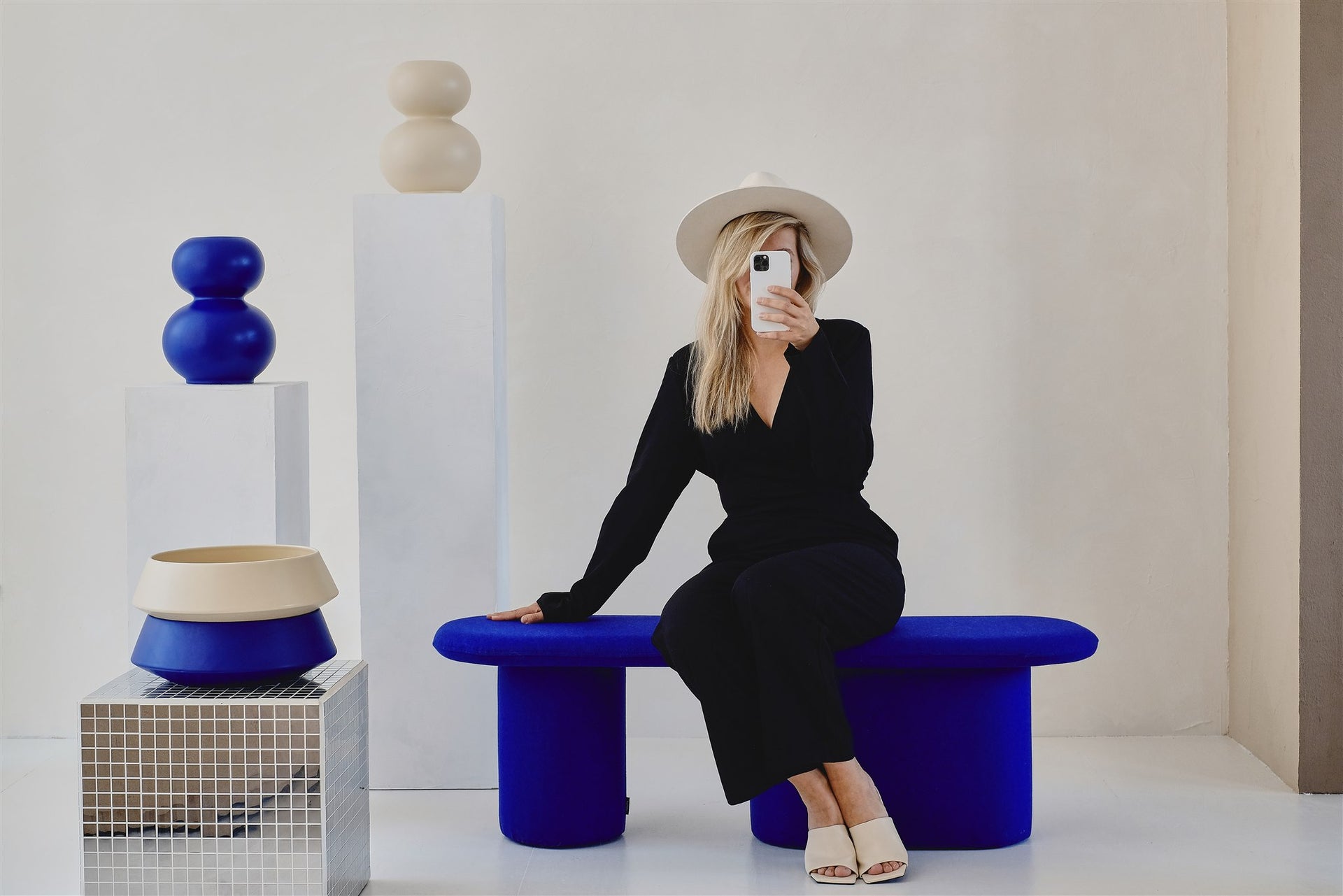 Take a peek and see how Rull Bench, Tuga ceramics and Tul Throw enhance the neutral beige vibe, or just the opposite, add a pop of electric blue color to visually beautify the interior.